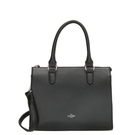 Handtas uit de Stratford serie van Charm London. Handtas met namaak leren uitstraling gemaakt van stevig polyester. Compact formaat met precies genoeg ruimte voor al je dagelijkse spullen. Volledig afsluitbaar middels een rits. Met intern extra steek- en ritsvakje. Prettig in gebruik met stevige handvatten en een verstelbare, afneembare schouderriem.