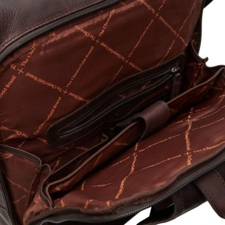Deze leren rugzak bestaat uit twee delen. Het hoofdvak van de rugzak Liverpool heeft een ruime flap die je op kunt rollen en kan sluiten door middel van kliksluiting. Aan de achterkant zit een apart ritsvak voor een laptop tot en met 14 inch. Door de organizer in dit vak is dit zeer overzichtelijk. Dit vak is afgewerkt met geschuimd materiaal voor extra bescherming. De brede schouderbanden en de zachte voering aan de rugzijde zorgen voor optimaal draagcomfort.