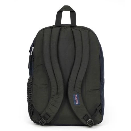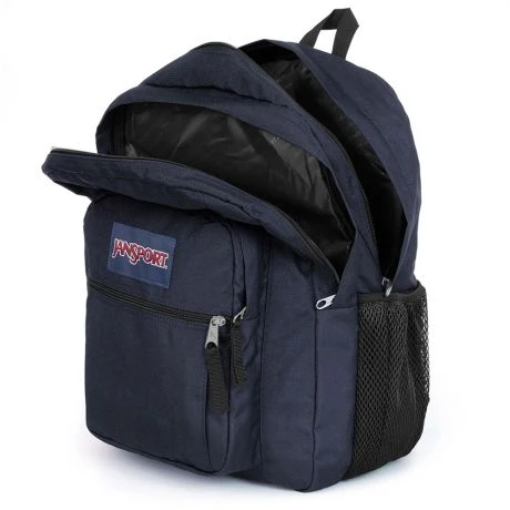 Rugtas uit de Big Student serie van Jansport. Deze stevige laptoptas bevat twee hoofdcompartimenten, beiden geschikt voor A4 mappen en/of documenten. Het tweede compartiment bevat bovendien een gewatteerd 15″ laptopvak en op de voorkant zit een ruim georganiseerd ritsvak. En apart nog 2 kleine ritsvakjes. De rugzak is comfortabel dankzij de gewatteerde rug en schouderbanden. De schouderbanden zijn zelfs dubbel gevoerd en makkelijk verstelbaar. Zeer geschikt voor mee naar school of naar je werk.