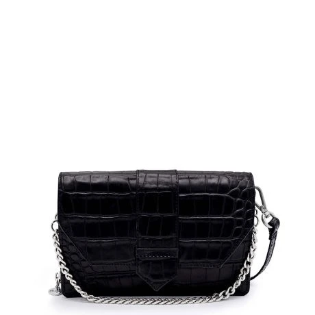 Stijlvol en praktisch telefoontasje van MÅŒSZ. De tas biedt niet alleen ruimte aan je mobiele telefoon (in alle maten) maar heeft ook 10 kaarthouders met RFID bescherming, wat het skimmen van je pasjes onmogelijk maakt. Daarnaast is er ruimte voor brief- en kleingeld, een speciaal opbergvakje voor je oordopjes en dan nog is er genoeg ruimte voor je dagelijkse ‘kleinere’ spulletjes. Het telefoontasje is op twee verschillende manieren te dragen. Crossbody dankzij de verstelbare en afneembare schouderriem en als handtas dankzij de korte schakelketting.