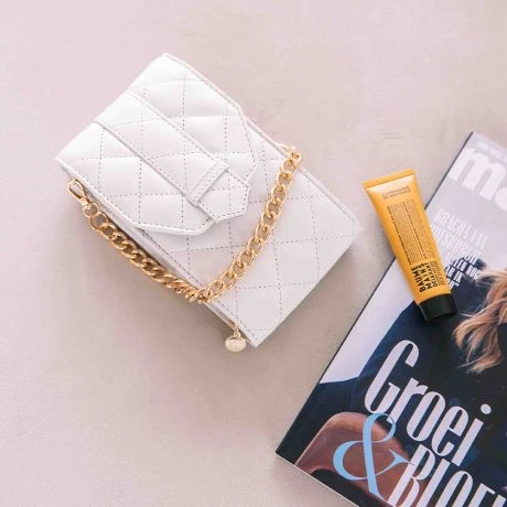 Stijlvol en praktisch telefoontasje van MÅŒSZ. De tas biedt niet alleen ruimte aan je mobiele telefoon (in alle maten) maar heeft ook 10 kaarthouders met RFID bescherming, wat het skimmen van je pasjes onmogelijk maakt. Daarnaast is er ruimte voor brief- en kleingeld, een speciaal opbergvakje voor je oordopjes en dan nog is er genoeg ruimte voor je dagelijkse ‘kleinere’ spulletjes. Het telefoontasje is op twee verschillende manieren te dragen. Crossbody dankzij de verstelbare en afneembare schouderriem en als handtas dankzij de korte schakelketting.