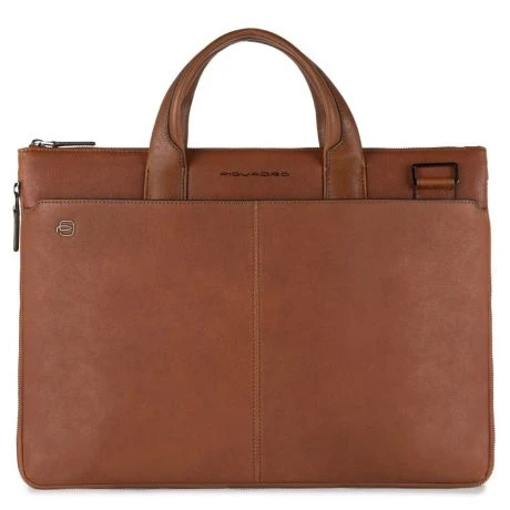 Piquadro Black Square Small Expandable Computer Bag 15.6” Tobacco