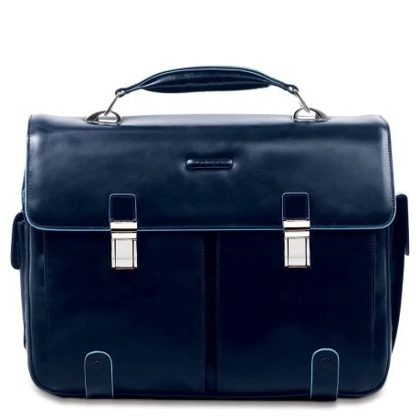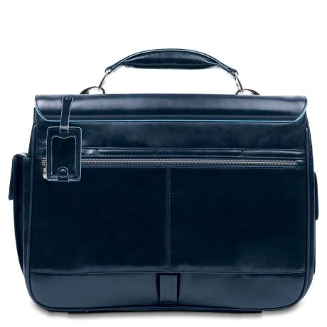 Luxe lederen laptoptas uit de Blue Square serie van Piquadro. De collectie Blue Square is gemaakt van gelooid kalfsleer. Deze traditionele looimethode behoudt de schoonheid van het leer door de jaren heen. De ruwe snijranden die met de hand beschilderd zijn, tonen het businesskarakter van de collectie en zijn een zeer herkenbaar onderscheidend element. Deze laptoptas bevat twee ruime compartimenten en heeft ruimte voor een 15.6″ laptop en een 9.7″ iPad-/Tablet. Verder bevat de tas twee ruime voorvakken en een speciaal vakje voor een pen en een paraplu. Zeer comfortabel in gebruik door de verstelbare schouderband en het verstevigde gewatteerde handvat.